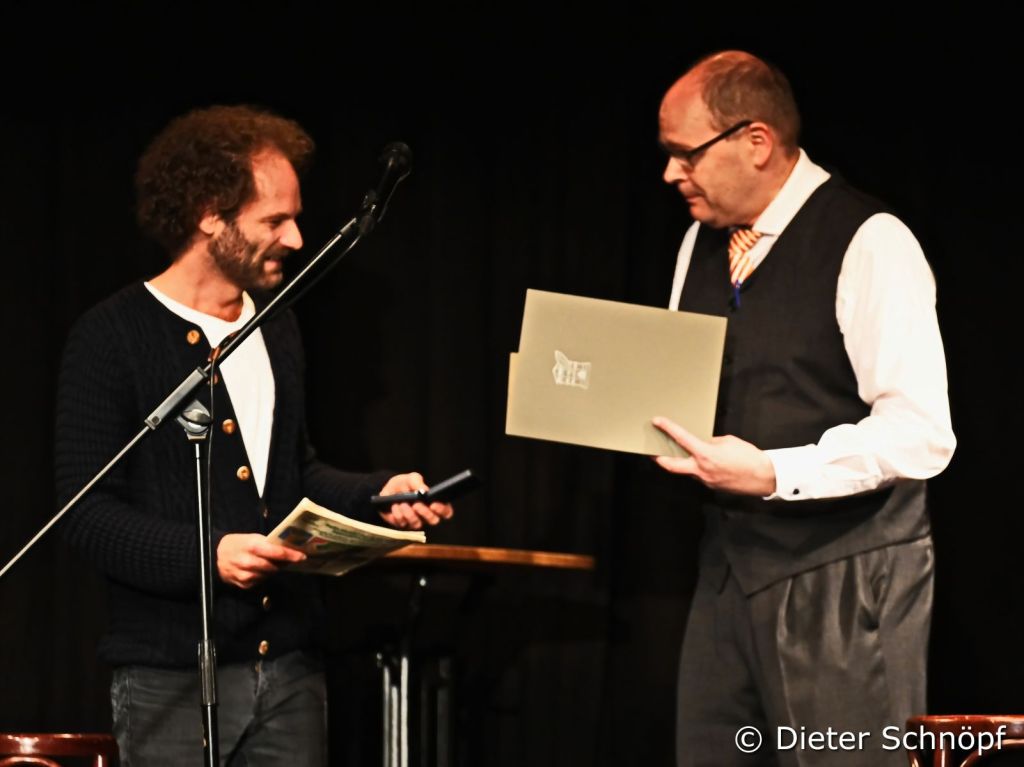Nach der Pause wurde Beatrice Richter, die eigens aus Berlin anreiste, von ihrem „bekennenden Fan“ Moses Wolff laudatiert und Klaus Wolf ehrte seinen „schwäbischen Landsmann“ Maxi Schafroth. Dazu traten mit Claudia Pichler und Ludwig Steinherr eine Turmschreiberin und ein Turmschreiber-Neuzugang auf. Die Moderation des Abends übernahmen Melanie Arzenheimer, Holger Paetz und Georg Eggers.