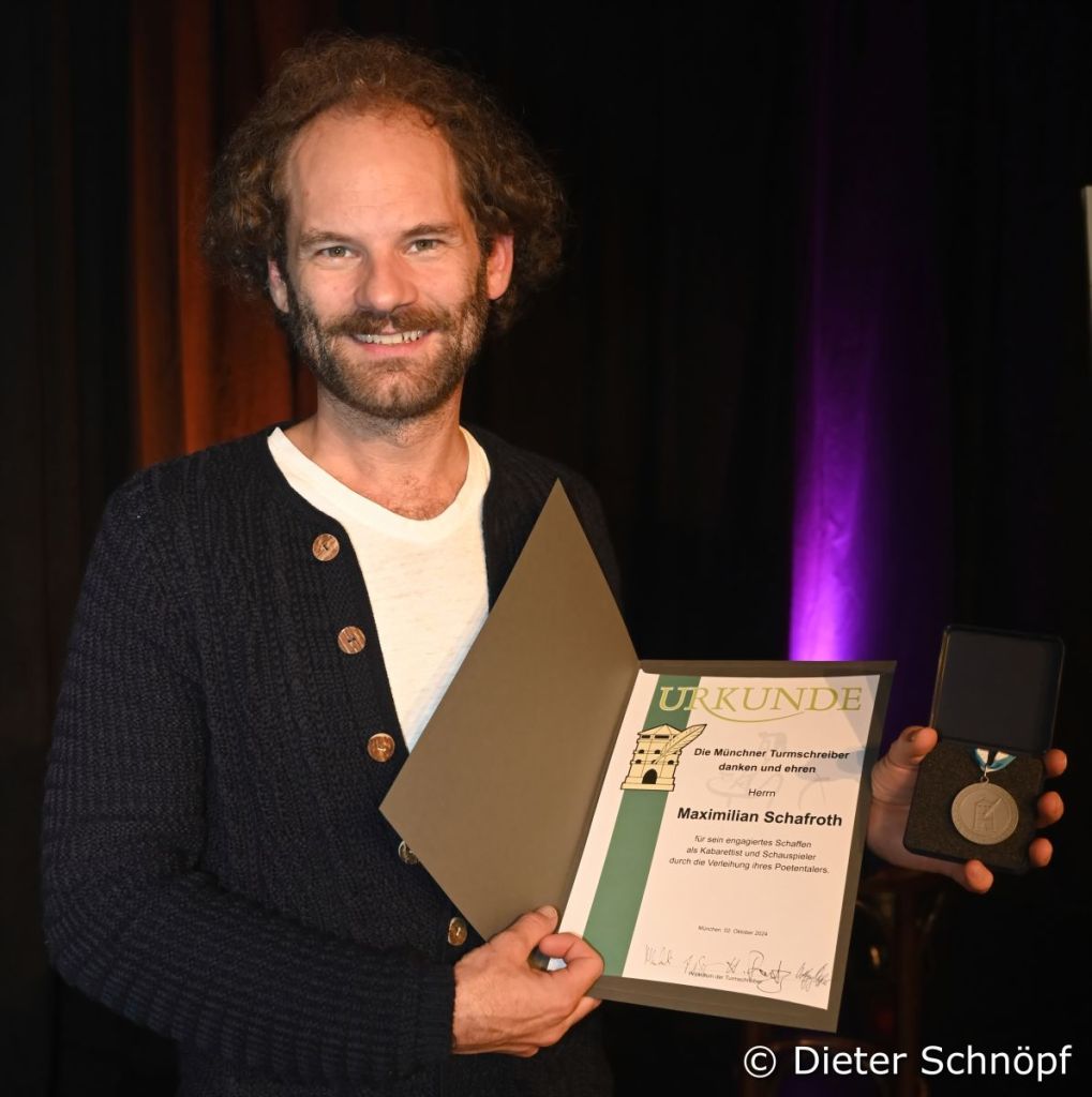 Ein Taler kommt selten allein. Das gilt zumindest für den Bayerischen Poetentaler. Im Wirtshaus im Schlachthofwurden vier Personen, die sich um die bayerische Kultur verdient gemacht haben, mit selbigem ausgezeichnet. Die Münchner Turmschreiber ehrten in diesem Jahr den Kabarettisten Maxi Schafroth, den Liedermacher, Musiker und Fernsehmoderator Werner Schmidbauer, den Kabarettisten, Musiker und Schriftsteller Josef Brustmann und die Schauspielerin und Komikerin Beatrice Richter.