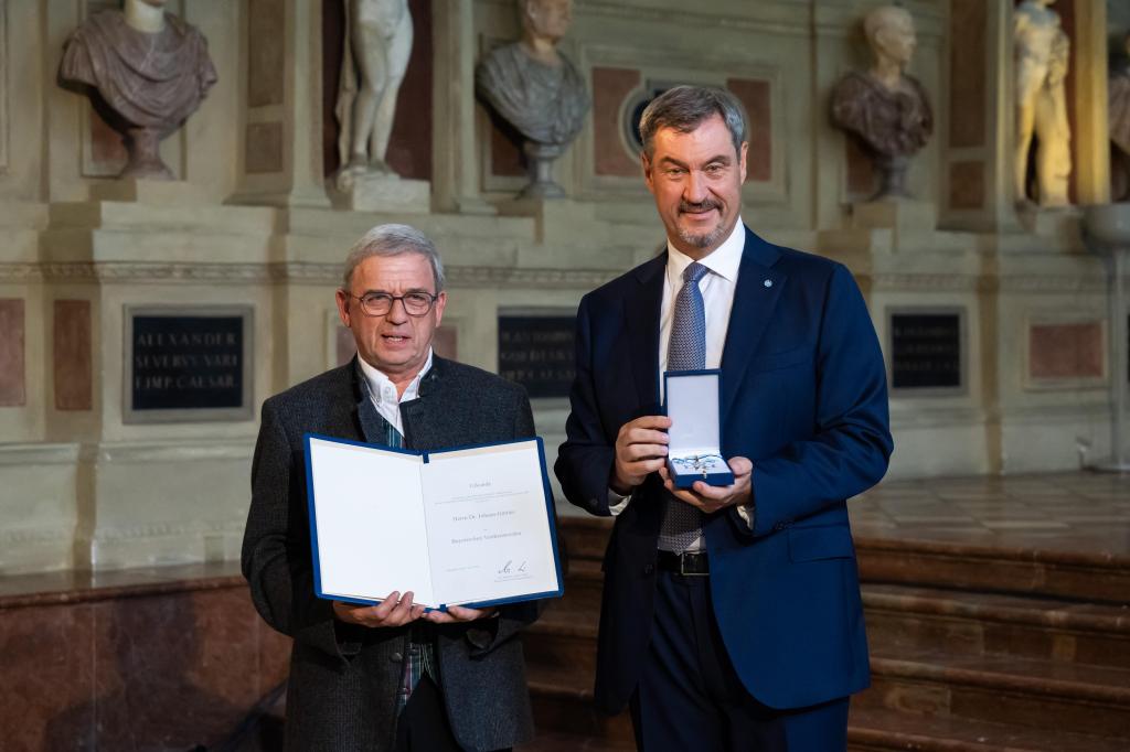 Ministerpräsident Markus Söder hat am 9. Juli im Antiquarium der Münchner Residenz 63 Persönlichkeiten mit dem Bayerischen Verdienstorden ausgezeichnet. Darunter war auch Turmschreiber Hans Göttler. Wir gratulieren!